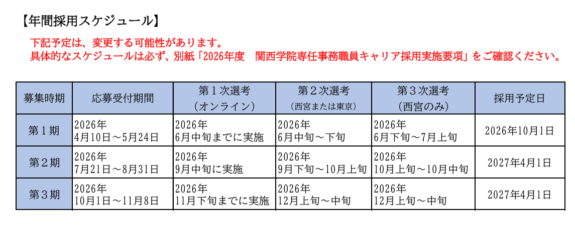 関西学院大学は少し珍しい採用方式となっていますが、応募者側としては非常にありがたい設計となっています。